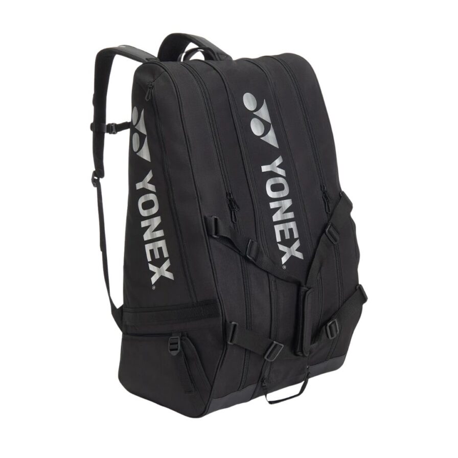 Le Yonex Gearlogic Racquet Bag 12Pcs Black est conçu pour les joueurs de tennis et de badminton ambitieux, exigeant fonctionnalité et durabilité. Le sac peut contenir jusqu’à 12 raquettes et combine rangement flexible, structure stable et design noir classique convenant à tous les niveaux de jeu.